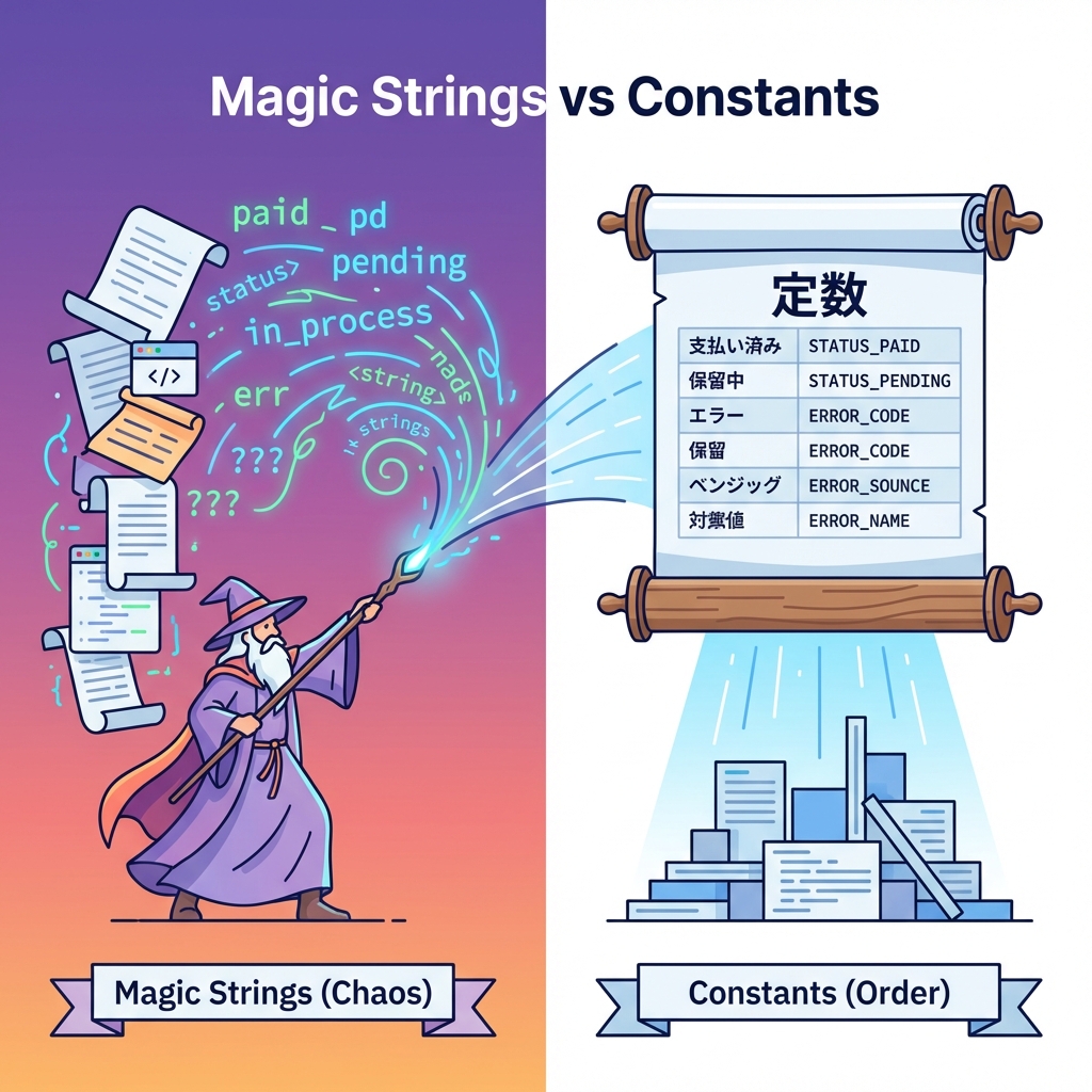 - **文字列が“知識”なら、散らすな!1か所に置け!**🏷️