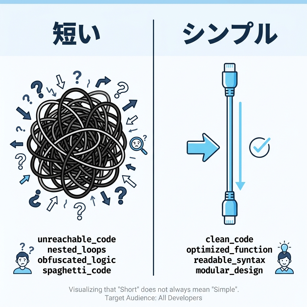 短いのに読めないコード、あるあるだよね😂 “文字数”じゃなくて“脳の負荷” が少ないのがシンプル✨