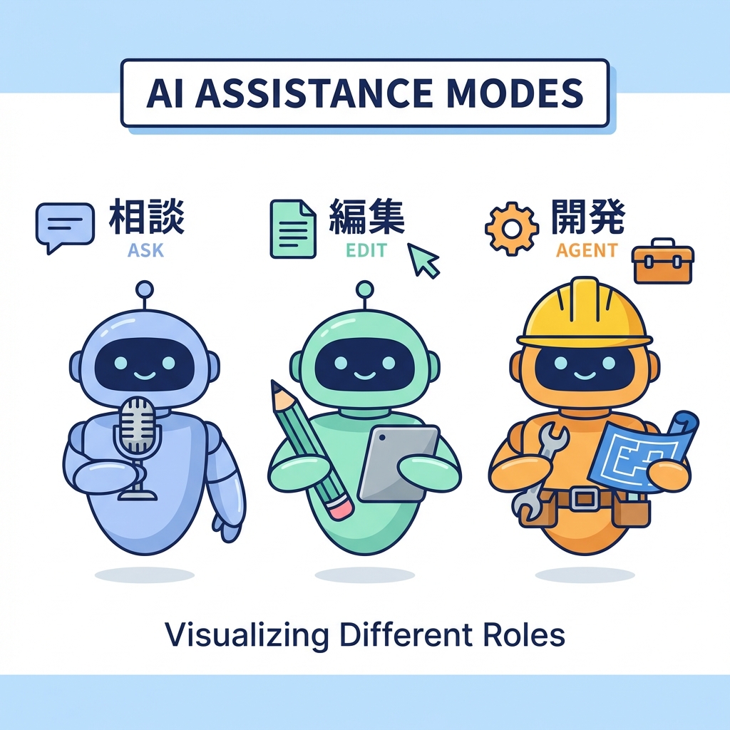 最近のAIコーディング支援は、だいたいこの3つに分かれるよ〜🪄 (名前はツールで多少違うけど、考え方は同じ!)